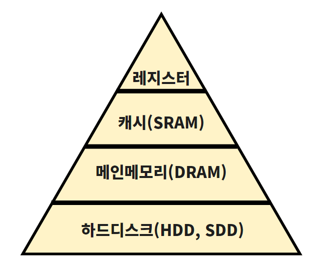 - SRAM: 주로 캐시메모리로 활용되며, 집적도가 상대적으로 낮지만 시간이 지나도 저장된 데이터가 사라지지않아 캐시메모리로 사용된다.