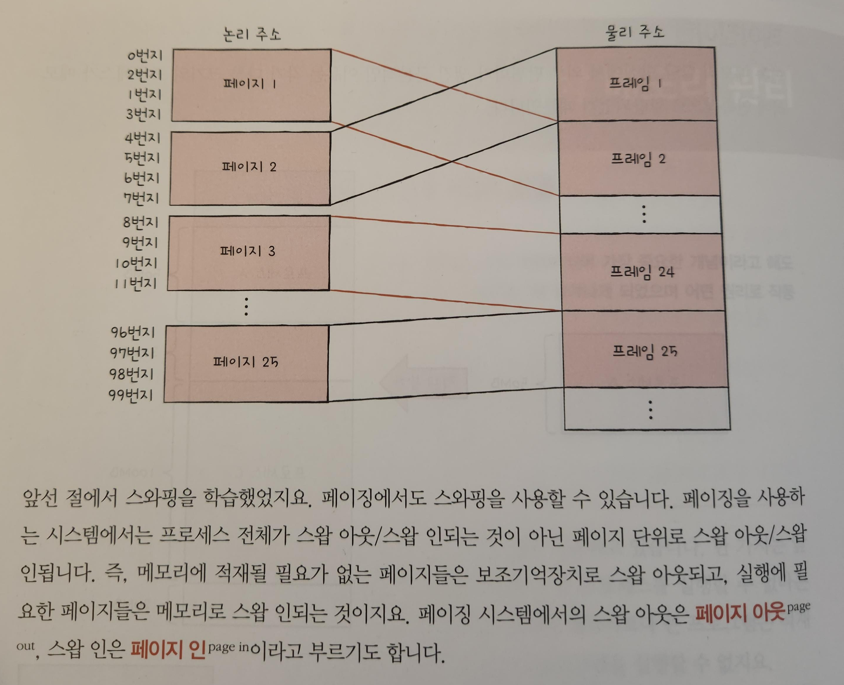참고로 스왑 아웃 되었던 프로세스가 다시 스왑 인 될때는 스왑 아웃 전의 물리 주소와는 다른 주소에 적재될 수있다.