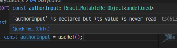 그리고 임포트한 useRef 를 authorInput 상수에 함수호출해서 담아주고나면