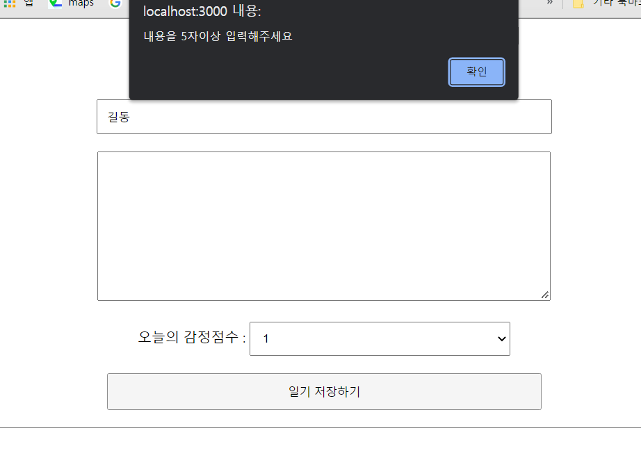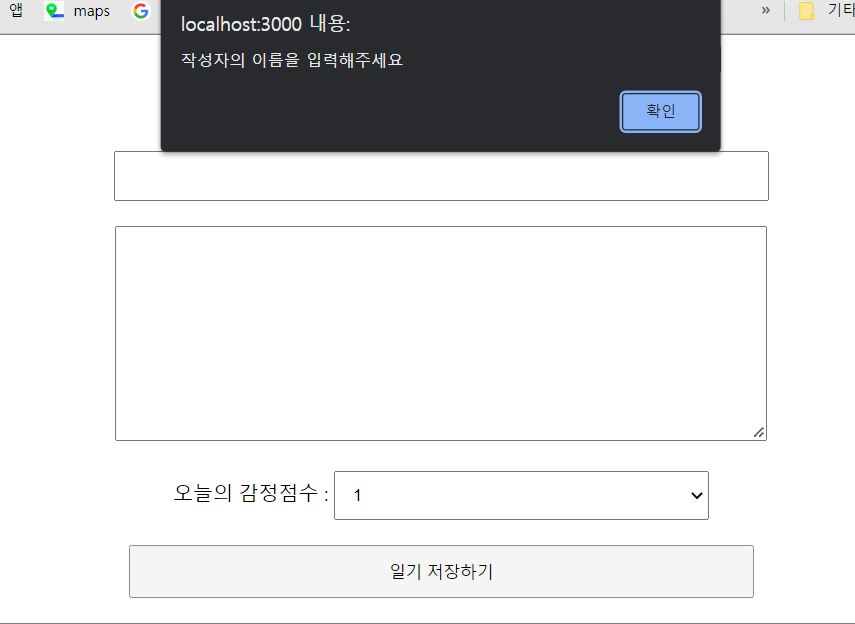 일기 저장 버튼을 클릭했을 때 값이 없으면 focus하기
